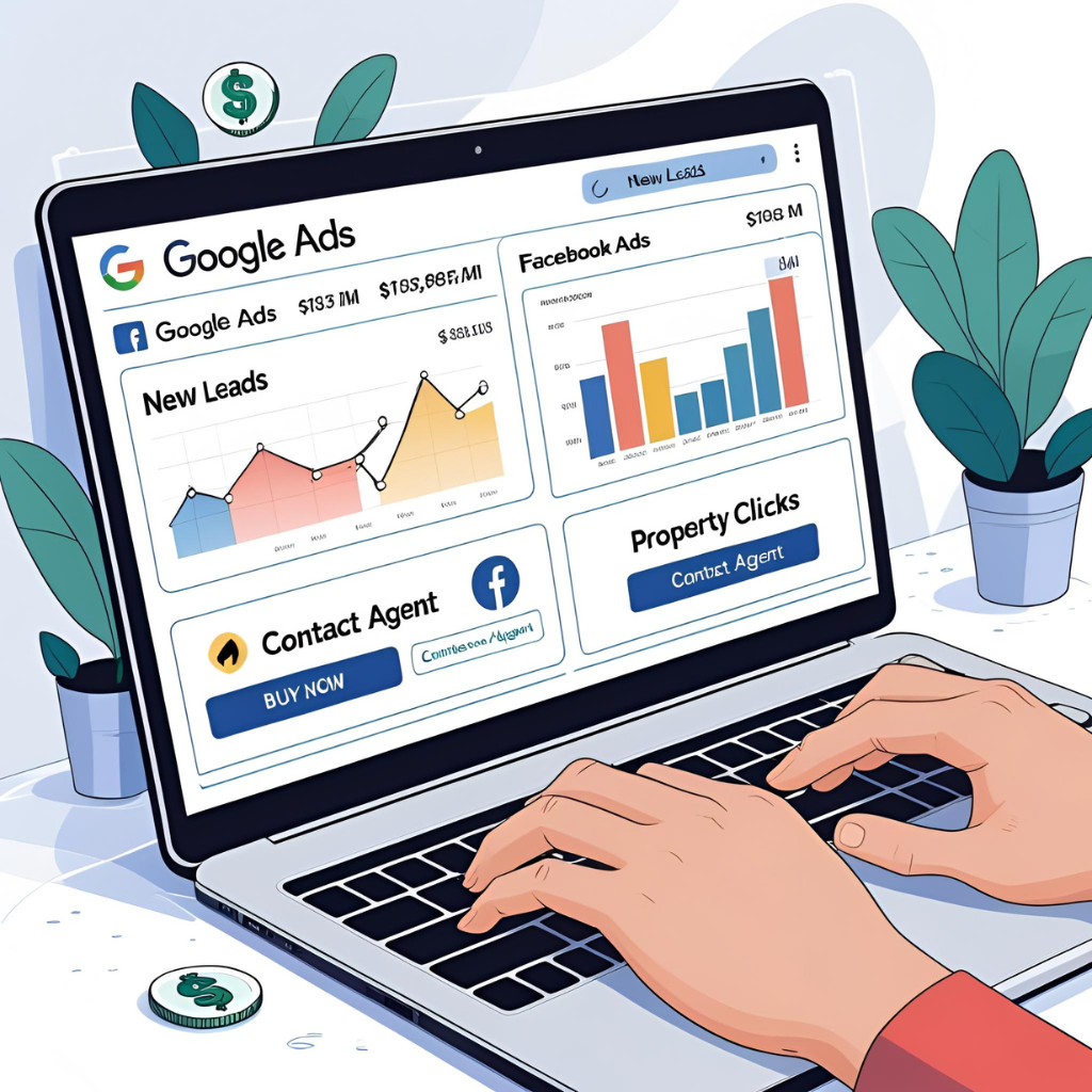 We use targeted SEO, paid ads, and social media strategies to increase visibility, generate buyer/seller leads, and boost property inquiries.